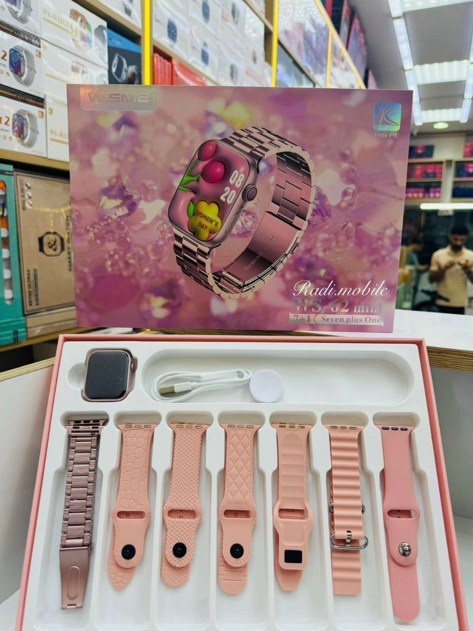 - رنگ بندها: صورتی، مشکی و یک عدد بند فلزی رولکس صورتی